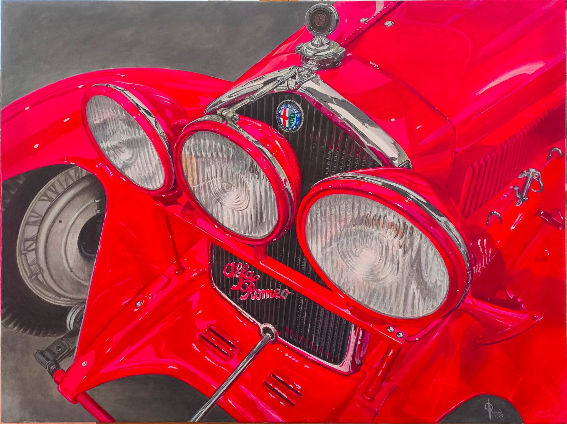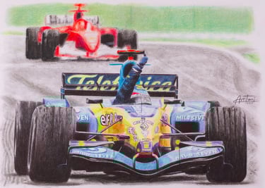 El origen de una obsesión: Mi fascinación por el motor no empezó frente a un lienzo, ni en una galería, sino en el asiento trasero de un coche durante los largos viajes de mi infancia. Recuerdo apoyar mi cabezita contra la puerta para sentir la vibración y amplificar el rumor del motor y la rodadura dentro de mí; era una conexión física con la máquina que me ha acompañado siempre. Aún hoy día sigue siendo una de las sensaciones más placenteras y capaces de transmitirme mayor calma. En el instituto, mientras el mundo seguía su curso, mis cuadernos se llenaban de carrocerías y diseños de coches, una "distracción" que ya vaticinaba este futuro.