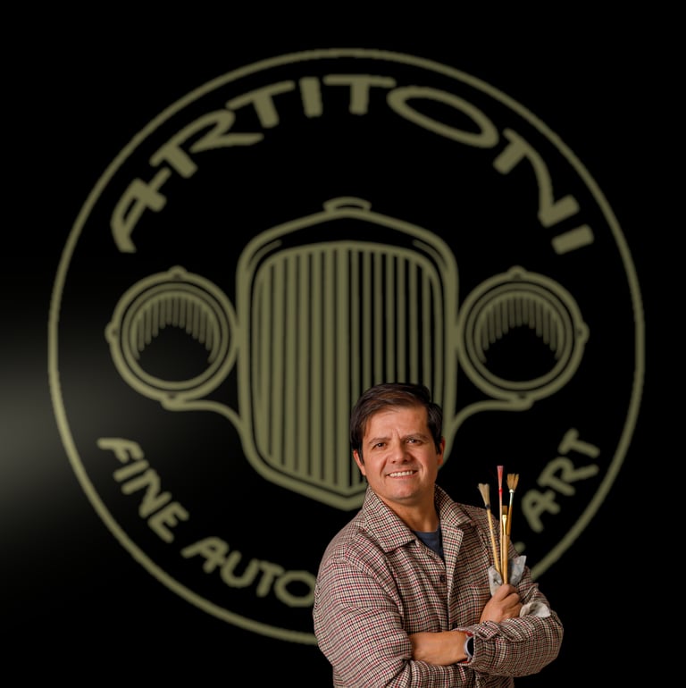 Hoy: Artitoni. De forma natural, los puntos se han conectado. Mi formación en Bellas Artes, mi disciplina técnica como profesor y mi obsesión por el diseño automovilístico han confluido aquí. He decidido "desempolvar" esta pasión contenida durante años para volcarla en cada obra, disfrutando de este mundillo con la misma ilusión con la que me montaba en cada coche cuando era un niño. Aquel niño era Toni González, con el tiempo y los cambios se tornó Antonio pero hoy vuelve a ser Toni...